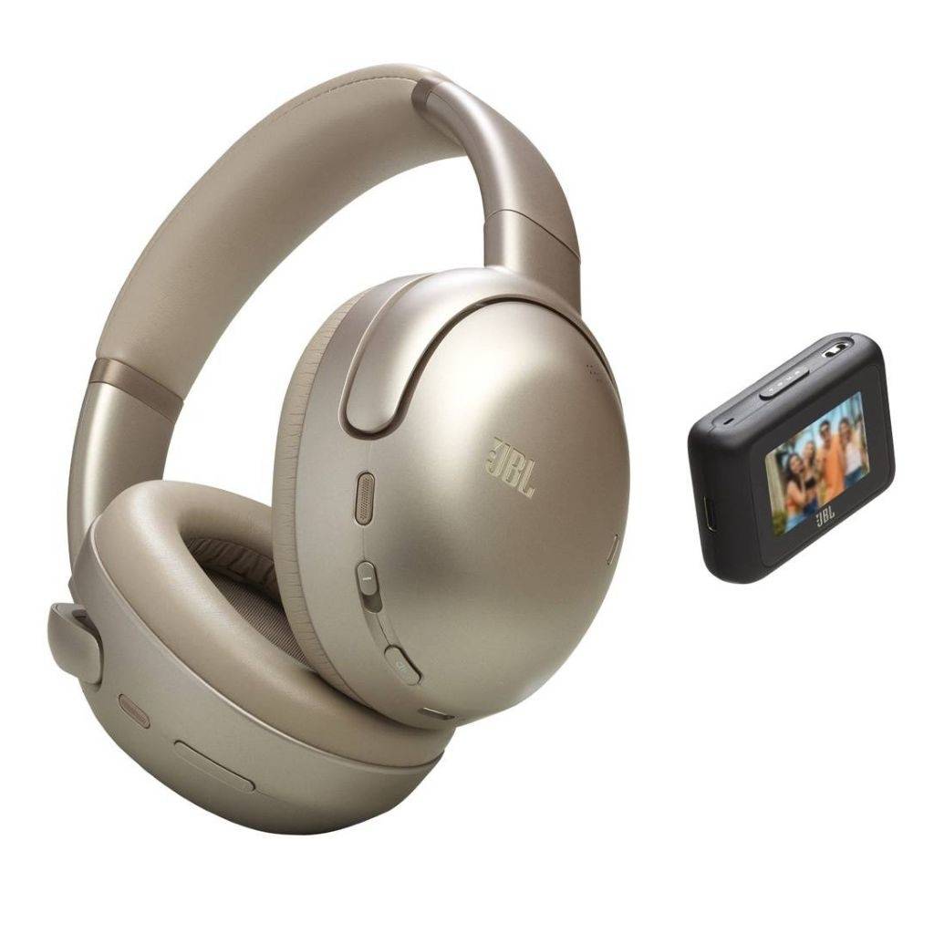 Auriculares over-ear premium JBL Tour One M3 Smart Tx con sonido envolvente de alta resolución y cancelación de ruido adaptativa True Adaptive Noise Cancelling 2.0 que se ajusta automáticamente al entorno. Disfrutá de audio claro y equilibrado con JBL Spatial 360 y conectividad Bluetooth 5.3 para música y llamadas sin cables. Incluyen transmisor JBL Smart Tx para conectarte fácilmente a cualquier fuente de audio (incluyendo dispositivos sin Bluetooth) y compartir sonido vía Auracast™. Hasta 70 h de batería (40 h con ANC activado), micrófonos integrados para llamadas nítidas y diseño cómodo para uso diario.