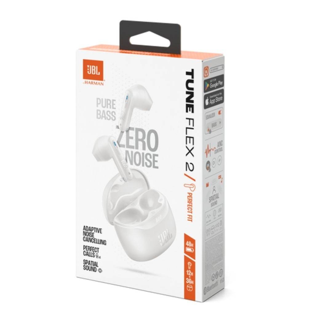 Los auriculares JBL Tune Flex 2 incorporan drivers dinámicos de 12 mm que son los responsables del potente sonido JBL Pure Bass. Así que tanto si estás escuchando tu lista de reproducción favorita como viendo una película o jugando con la consola, el sonido JBL Spatial transforma el sonido estéreo de cualquier fuente o dispositivo en una experiencia auditiva más envolvente.