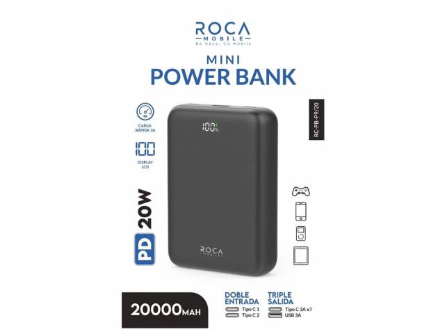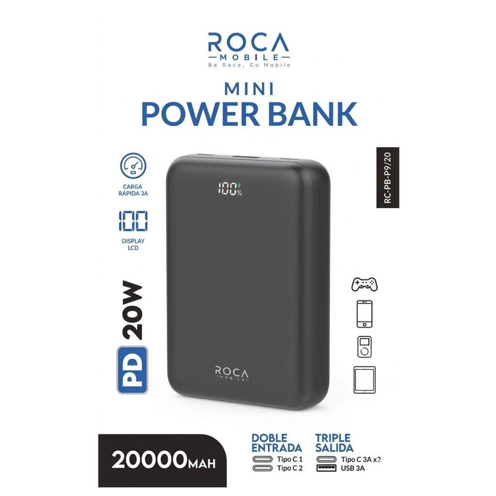 En stock En stock Power Bank ROCA Mini RC-PB-P930 30.000mAh 20W Entrada: 2 Tipo C Salida: USB + Tipo C Regístrate para ver $ precios Cód.ACC021033