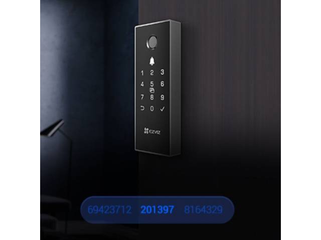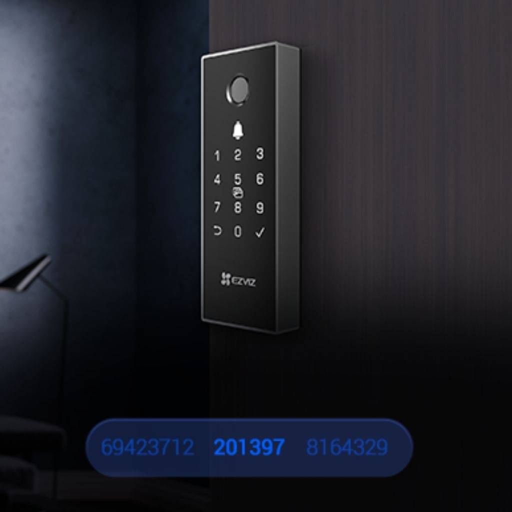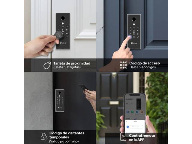 - Abre la puerta de distintas formas cómodas y seguras: mediante código PIN (hasta 50 grupos), códigos temporales para visitantes (validos hasta 1 año) y desbloqueo remoto vía app EZVIZ.