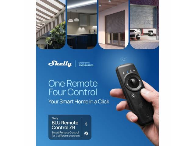 El Shelly BLU Remote Control ZB es un control remoto inteligente multicanal de mano que utiliza conectividad Bluetooth y Zigbee para gestionar diversos dispositivos del hogar inteligente.
