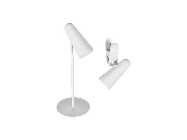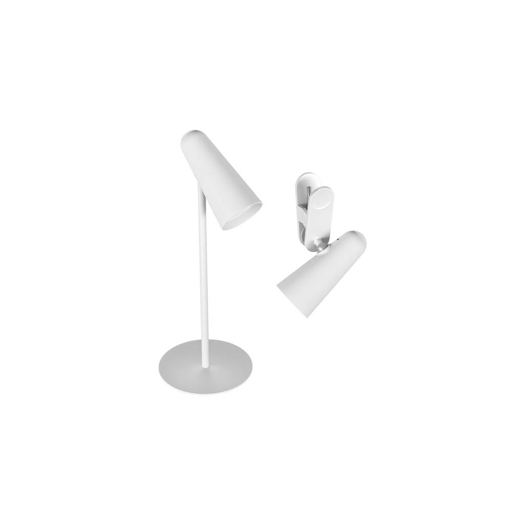 Diseño multifuncional: Incluye un cabezal de lámpara, una base de escritorio y una base con clip, permitiendo su uso como lámpara de escritorio, lámpara con clip o linterna portátil.
