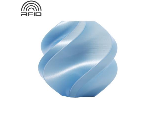 Filamento Bambu Lab PLA Silk+ Azul, acabado brillante y sedoso.