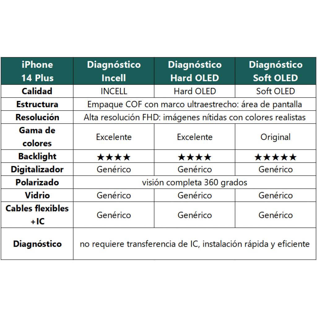 En stock En stock Display Apple iPhone 14 (Hard OLED) Comp. Negro Diagnostic Regístrate para ver $ precios Cód.REP020652