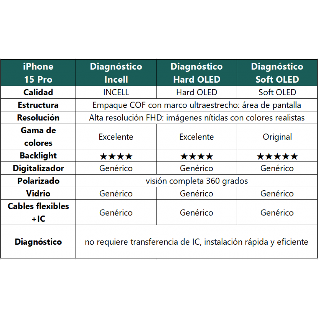 En stock En stock Display Apple iPhone 15 (Incell High-End) Comp. Negro Diagnostic Regístrate para ver $ precios Cód.REP020664